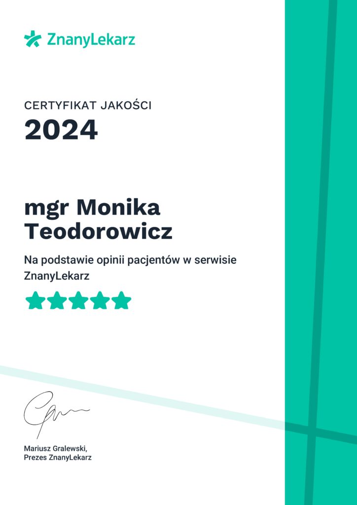 Nazywam się Monika Teodorowicz i pracuję jako psycholog online, wspierając dorosłych oraz młodzież od 12. roku życia w trudnościach emocjonalnych, kryzysach i wyzwaniach życiowych. Prowadzę konsultacje psychologiczne i terapię online, pomagając odzyskać równowagę, zrozumienie siebie i poczucie sprawczości.